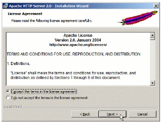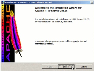 Откроется диалоговое окно установки Apache.